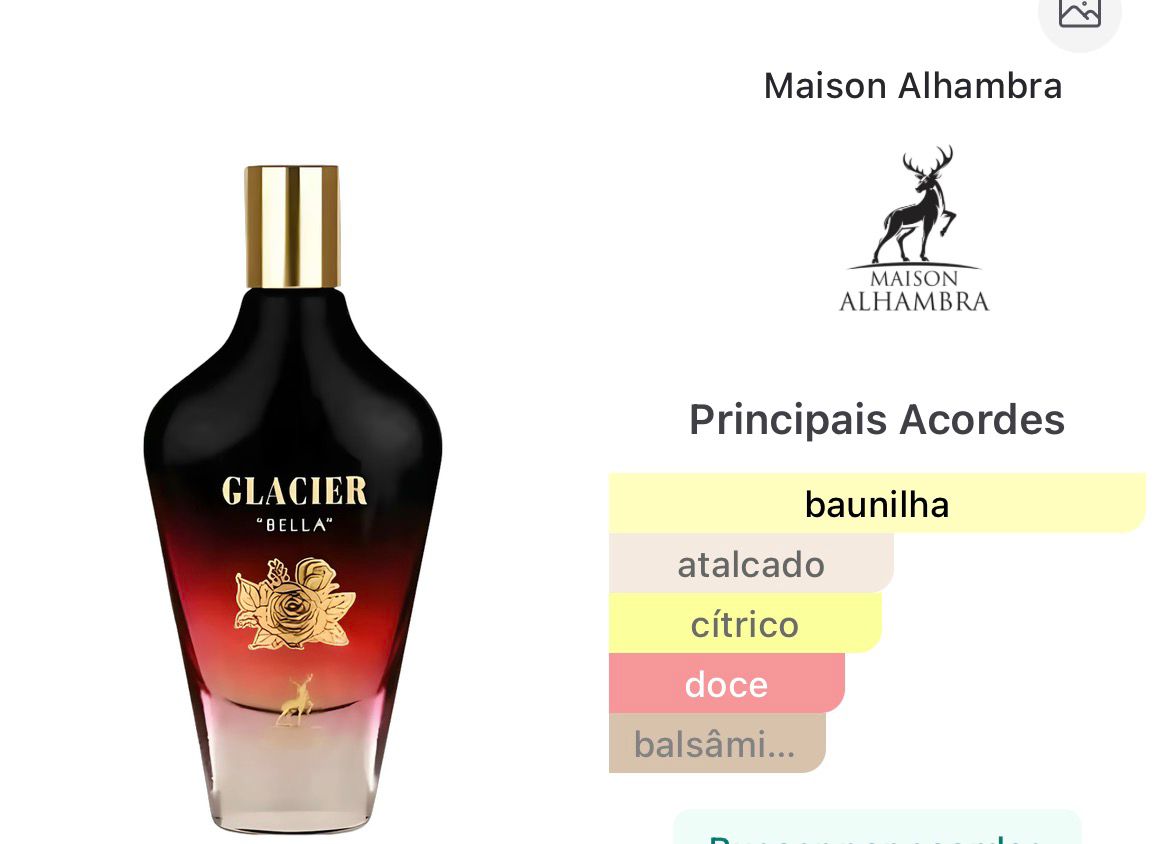 Glacier Bella de Maison Alhambra é um perfume Compartilhável. Glacier Bella foi lançado em 2024. A fragrância contém Pera Verde, Fava de Baunilha e Bergamota.
