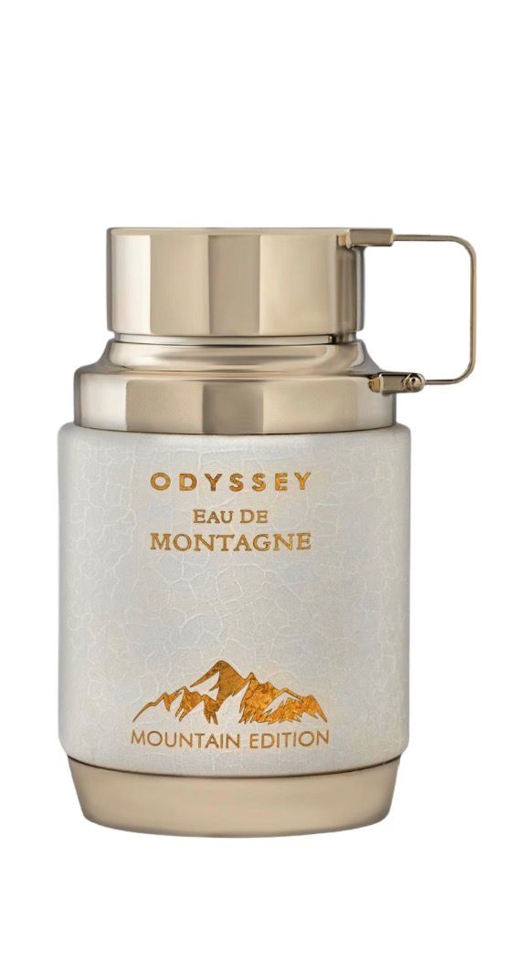 Odyssey Eau de Montagne de Armaf é um perfume Oriental Baunilha Compartilhável. Esta é uma nova fragrância. Odyssey Eau de Montagne foi lançado em 2025. As notas de topo são: Amêndoa, Lactona e Especiarias. A nota de coração é: Flores Brancas. As notas de fundo são: Baunilha, Sândalo, Almíscar e Cacau.