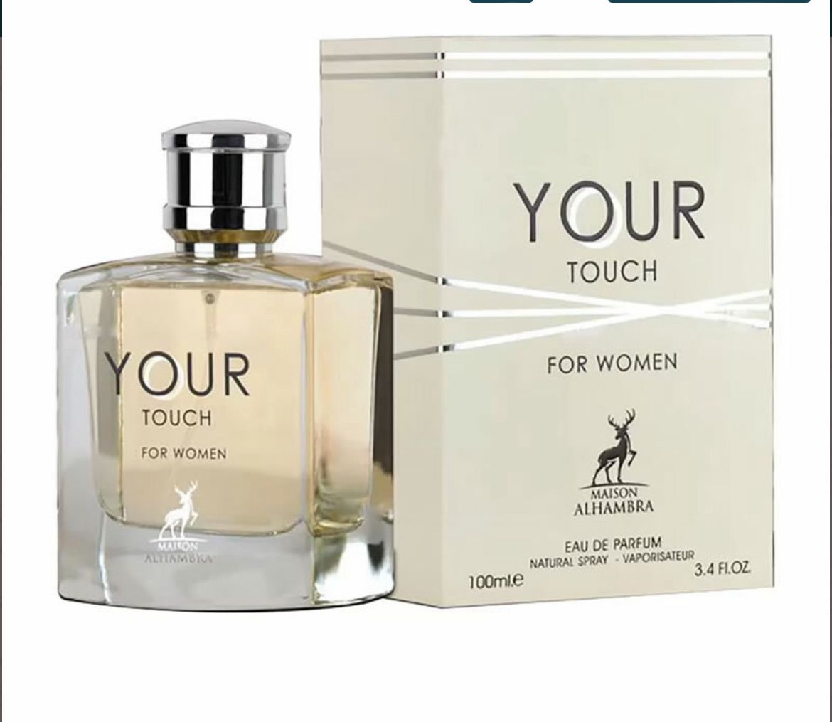 Your Touch women, irá captar a sua atenção desde o primeiro cheiro e mantê-lo a voltar para mais. Notas de Baunilha e Madeira de Âmbar misturam-se em harmonia com Framboesa e Limão para criar um aroma ousado e feminino que abre com notas de bagas frescas e termina com floral suave.