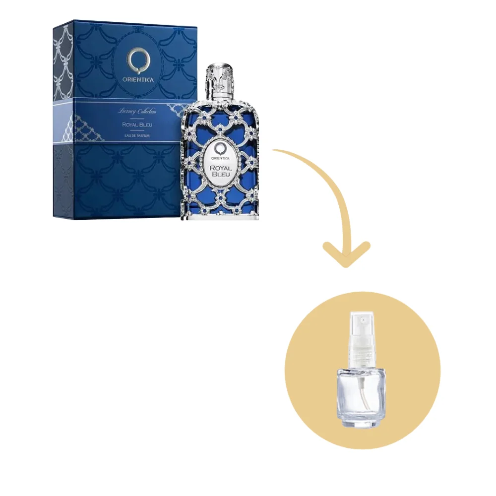 Royal Bleu de Orientica Premium é um perfume Compartilhável. Royal Bleu foi lançada em 2022. As notas de topo são: Lavanda, Maçã Verde, Mandarina, Pimenta e Bergamota. As notas de coração são: Cardamomo, Violeta, Gerânio e Jasmim. As notas de fundo são: Baunilha, Sândalo, Madeira Guaiac, Patchouli e Almíscar.
