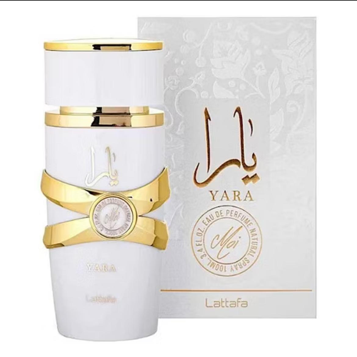 Yara Moi de Lattafa Perfumes é um perfume Feminino. Esta é uma nova fragrância. Yara Moi foi lançada em 2022. As notas de topo são: Jasmim e Pêssego. As notas de coração são: Caramelo e Âmbar. As notas de fundo são: Patchouli e Sândalo.
